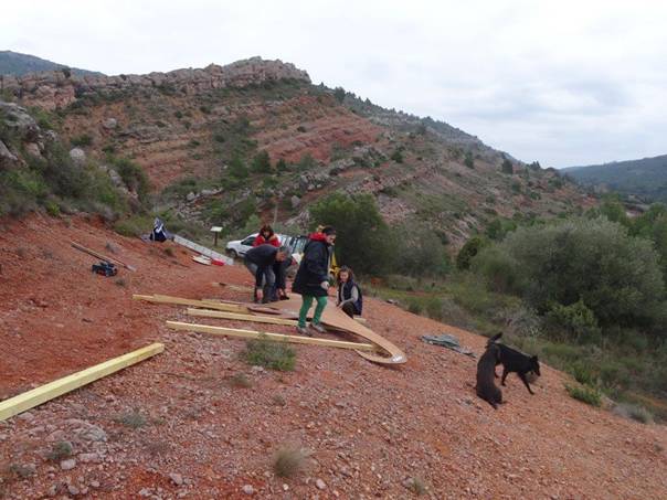 Profitant d’un lundi pas trop mauvais en décembre, l’équipe du Pays Touristique Corbières-Minervois est venue apporter son concours aux bénévoles du village pour le montage sur place :