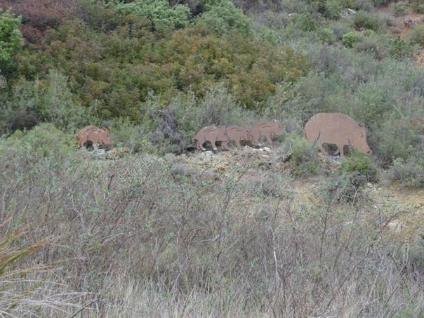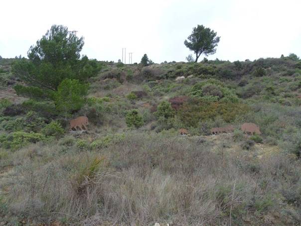 Les sangliers sont placés à gauche en montant vers le moulin à vent.