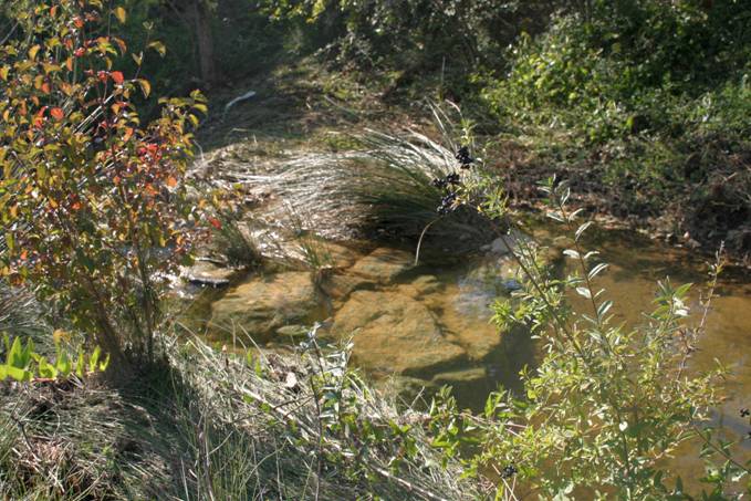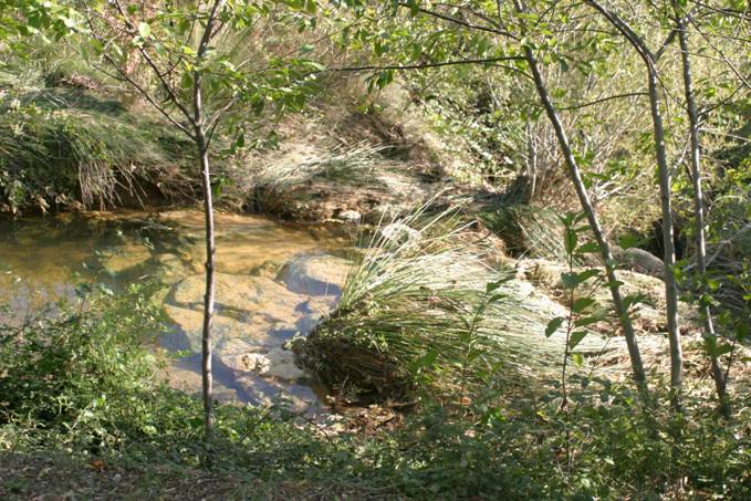 Le ruisseau du Prat coule au pied du castillou et limite les jardins au sud.