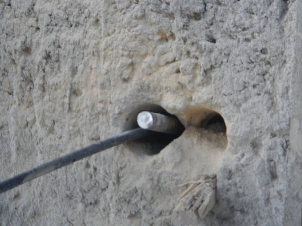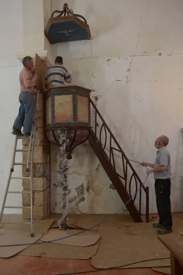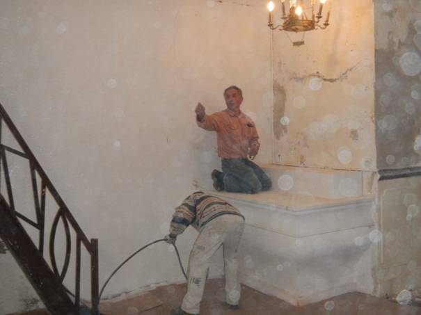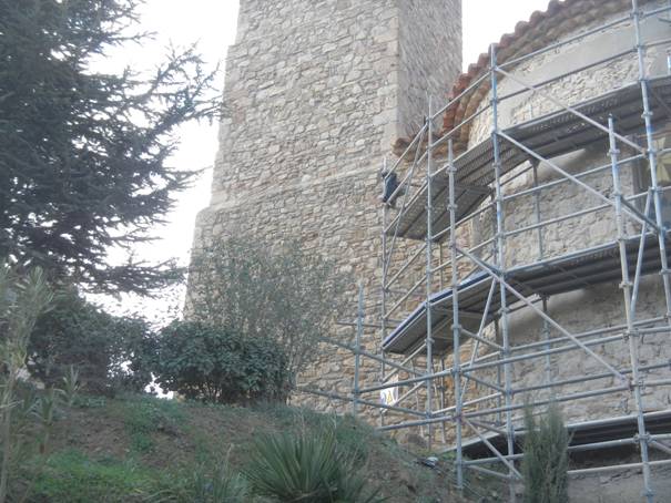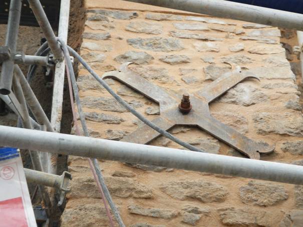 Le crépi a été enlevé, les fissures épinglées et les pierres rejointoyées